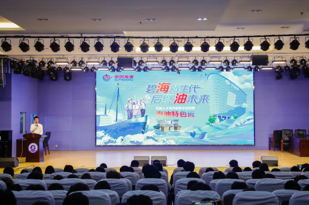 500余名2024级湖油学子现场聆听了关于中海油企业文化、企业愿景、职业发展前景等内容的介绍,不少学生希望能够投身于中国海洋石油事业,努力成为“深耕蓝色国土,致力兴海强国”的一分子。