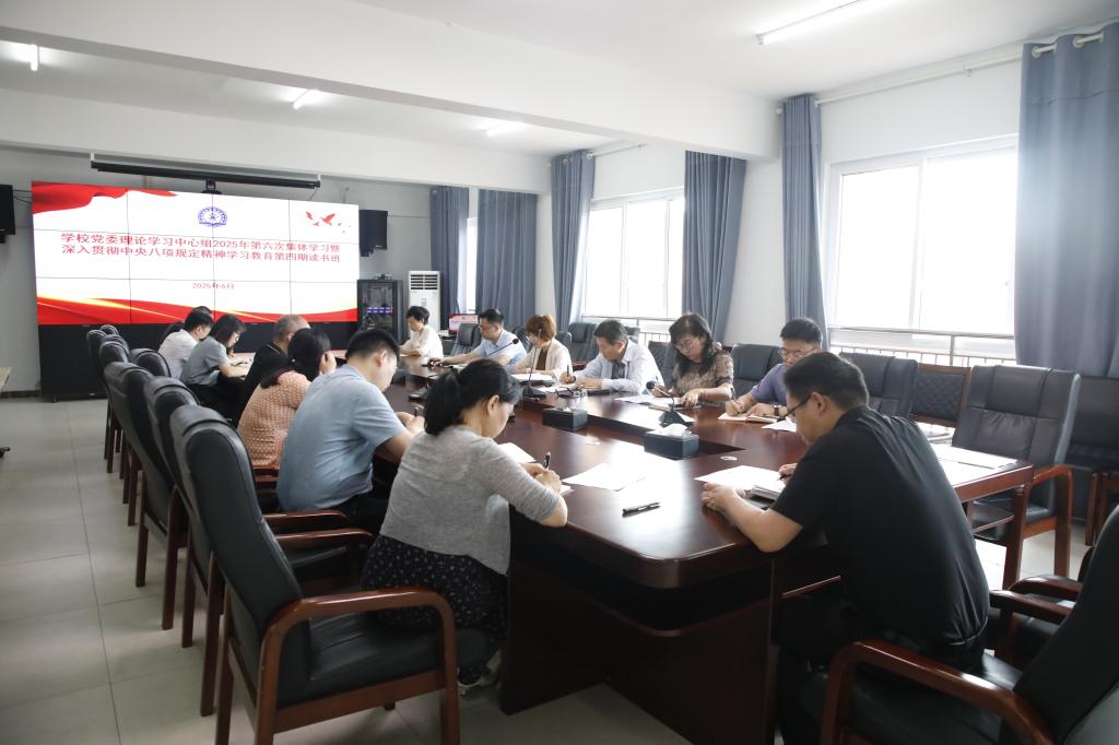 本网讯  6月18日,学校党委理论学习中心组(扩大)2025年第六次集体学习暨深入贯彻中央八项规定精神学习教育第四期读书班在德远楼第二会议室举行。学习会由学校党委书记徐方主持,党政领导班子成员及各党总支、直属党支部书记参加。