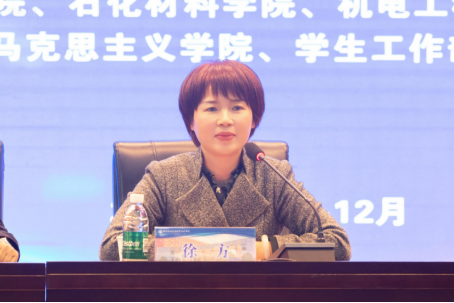 石化工程学院学生柳轶鑫和石化材料学院教师冯晓慧先后作为学生和教师代表发言表达了参加比赛、勇夺佳绩的信心和决心。