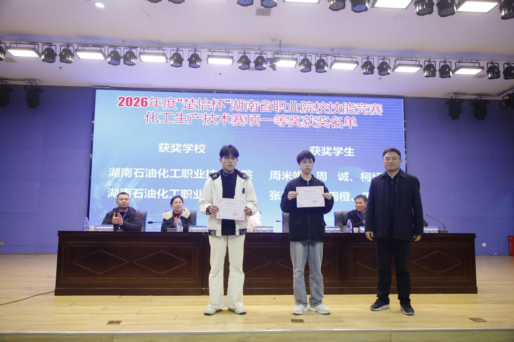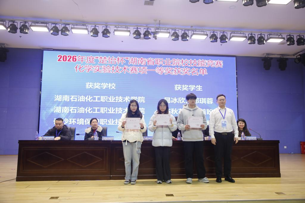 本网讯 2月4日—6日,2026年度“楚怡杯”湖南省职业院校技能竞赛化工生产技术赛项和化学实验技术赛项在伟德官网举行。本次竞赛汇聚了来自全省17所高职院校及技师学院的51支代表队、122名参赛选手同场竞技,历经三天激烈比拼,最终角逐出一等奖5项、二等奖10项、三等奖15项。伟德官网派出5支代表队参赛,斩获一等奖4项、二等奖1项。
