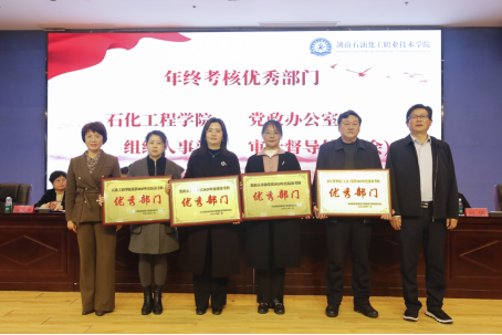 会上,党委委员、组织人事部部长刘三青宣读了《2025年度各单位年终绩效考评结果的通报》。党委书记徐方和党委副书记、校长唐课文共同为获得年终绩效考核优秀的部门颁发奖牌。
