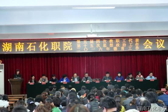 2016年3月25日下午14时至16时25分,湖南石化职院第五届四次教职工代表大会、第十五次思想政治工作会议、2016年德育工作会议在学院一教五楼会议室圆满完成各项议程顺利闭幕。
