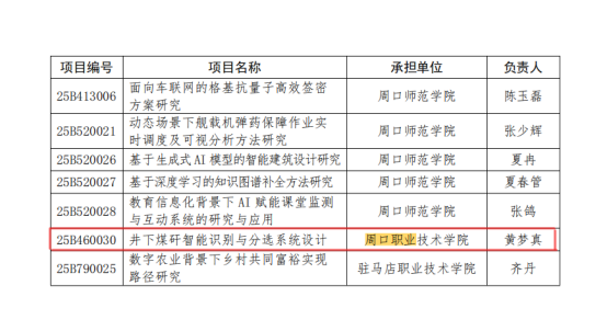 近日,河南省教育厅公布了2025年度河南省高等学校重点科研项目立项名单,betway官网的黄梦真教师的《井下煤矸智能识别与分选系统设计》项目获批。