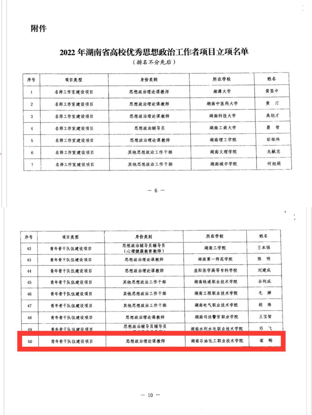 在湖南省2022年“芙蓉计划”—高校优秀思想政治工作者项目评选中,马克思主义学院谢畅老师成功获立青年骨干队伍建设项目,并授予“芙蓉学者·高校优秀思想政治工作者”称号。