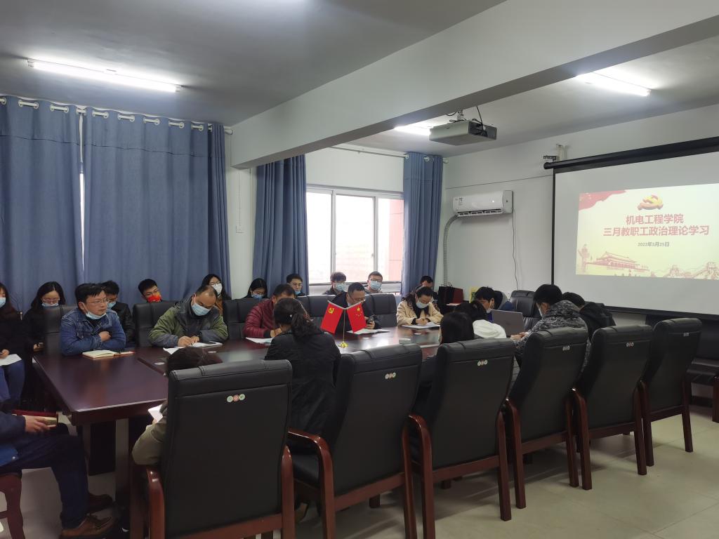 (通讯员 于吉鹏 何飞红 )根据学校党委宣传部《关于组织开展好2022年3月教职工政治理论学习的通知》通知要求,3月25日,机电工程学院党总支在德远楼534组织召开了机电工程学院全体教师的政治理论集体学习。