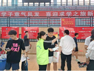 我院院长王彪和党总支副书记赵晓东十分关切报到现场的情况,关心师生的身体状况,细心调整降温冰块的位置。与前来咨询的新生家长亲切交谈,解决家长的疑虑,了解学生的家庭情况。有一位新生感慨道:“刚来到陌生的校园,心里还有些忐忑,但是看到这么热心的老师、学长学姐,瞬间就有了归属感。”党员们用实际行动践行着为人民服务的宗旨,让新生们感受到了学院的关怀和温暖。