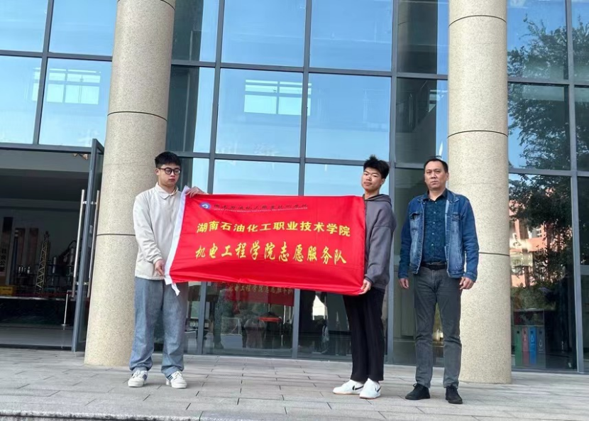 由机电工程学院党总支副书记赵晓东为我们机电工程学院的青年志愿者队伍进行授旗仪式,由机电工程学院学会主席杨凯亦接旗,请老师们放心,我们必将践行青春誓言,勇载历史使命,以青春之我、奋斗之我,让青春年华在为国家、为人民的奉献中焕发出绚丽光彩。