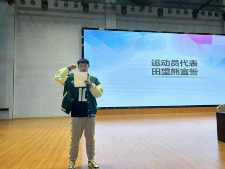随后田望雄同学、易凯亮同学分别代表全体运动员、全体裁判员宣誓,彰显比赛的庄重与严谨。