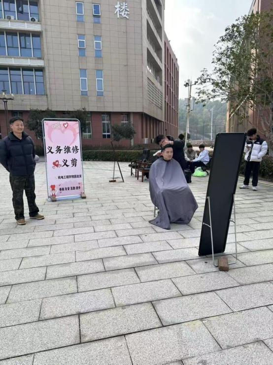 技能惠民,服务暖人心:思源广场上,学院结合机电专业特色,开展义务维修和义剪活动。用专业技能传递温暖。