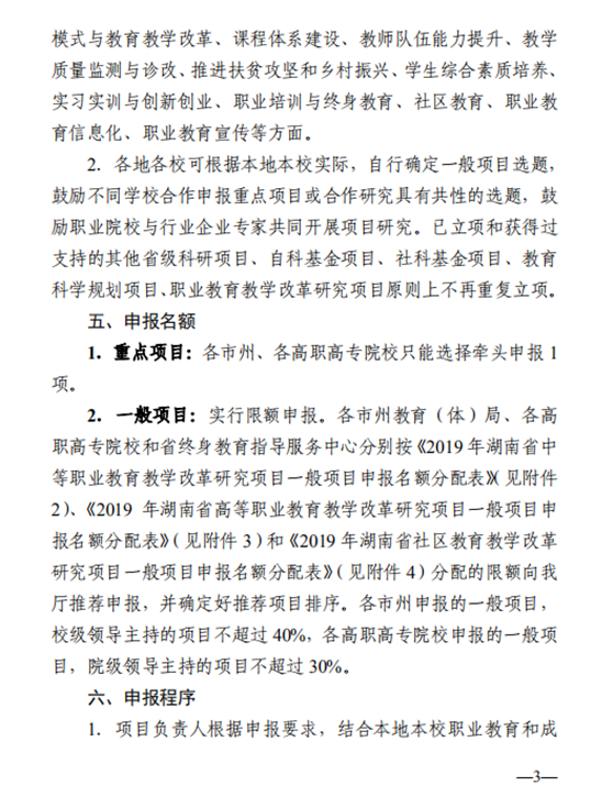 转发关于做好2019年湖南省职业教育教学改革研究项目申报工作的通知