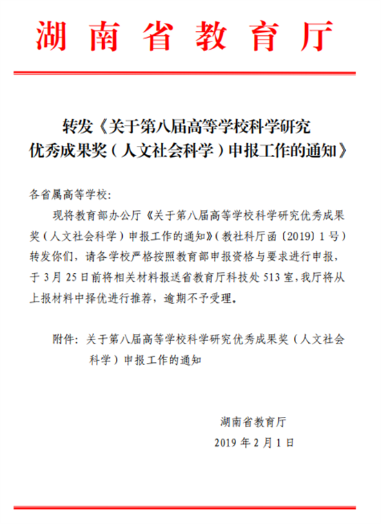 教社科厅函[2019]1号 教育部办公厅关于第八届高等学校科学研究优秀成果奖(人文社会科学)申报工作的通知.doc