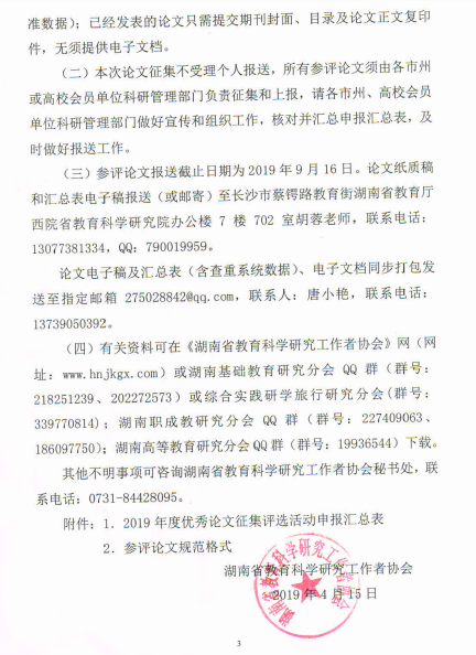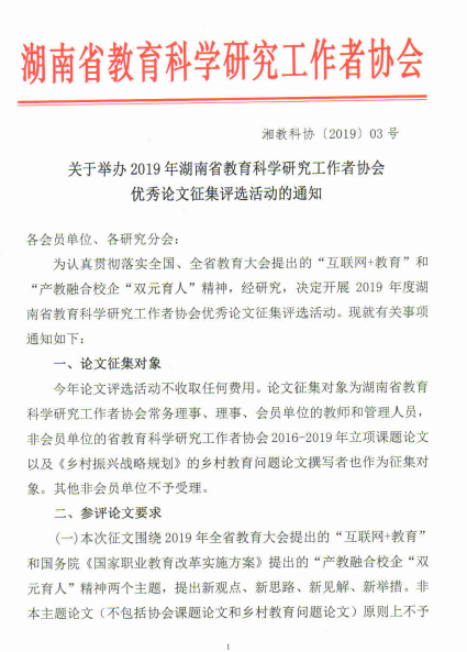 转发关于举办2019年湖南省教育科学研究工作者协会 优秀论文征集评选活动的通知