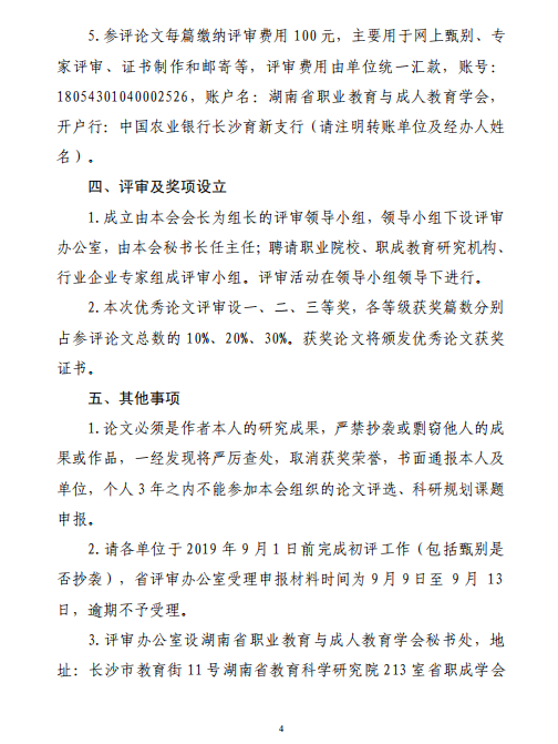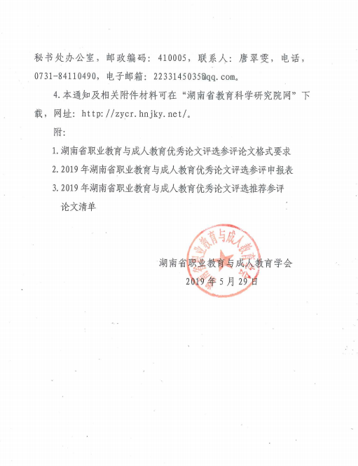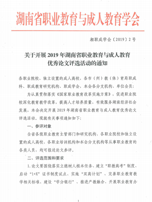 转发《关于开展2019年湖南省职业教育与成人教育优秀论文评选活动的通知》