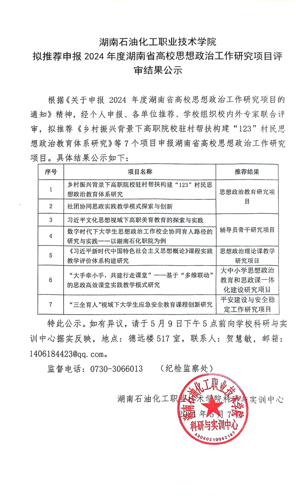 伟德bv国际体育拟推荐申报2024年度湖南省高校思想政治工作研究项目评审结果公示