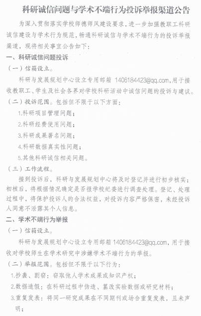 科研诚信问题与学术不端行为投诉举报渠道公告
