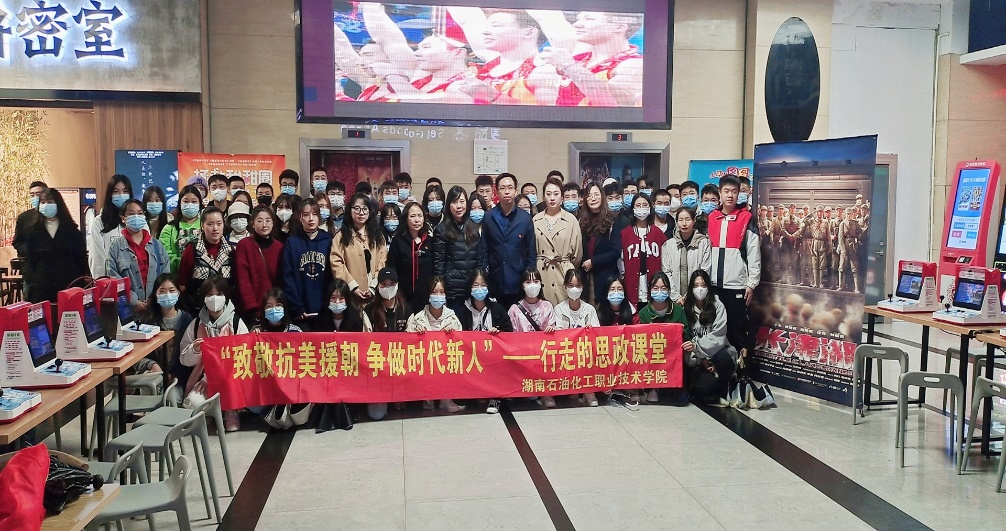 为深刻阐释与弘扬伟大抗美援朝精神,进一步扎实推进“四史”学习教育,厚植爱国主义情怀,肩负起时代新人使命。伟德bv国际体育马克思主义学院在中国人民志愿军抗美援朝出国作战71周年之际,结合《思想道德与法治》绪论部分“担当复兴大任 成就时代新人”授课内容,10月16日上午九点,马克思主义学院全体教师带领青年马克思主义研习社(简称:青马社)骨干及全校各班优秀学生代表,开展“致敬抗美援朝 争做时代新人"行走的思政课堂第一部分以爱国影片《长津湖》观影活动。
