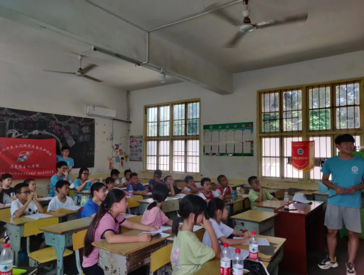 马克思主义学院本次暑期“三下乡”社会实践活动以“好风凭借力,乡村必振兴”为主题。马克思主义学院副院长谢畅带领教师和学生志愿者们来到平江县岑川镇中心小学开展了红色故事教学课程,旨在为让少年儿童从小传承红色基因、感受红色文化、感恩党的温暖,激发爱祖国的情感,培根铸魂、启智润心,帮助孩子们扣好红色人生的第一粒扣子。