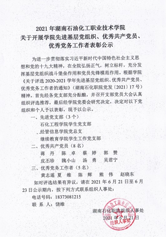 关于开展学院先进基层党组织、优秀共产党员、优秀党务工作者表彰公示
