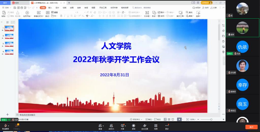 (通讯员:钟磊)为确保本学期的开学及各项工作的顺利开展,人文学院今日(8月31日)顺利召开了2022年秋季开学工作会议,安排布置新学期的各项准备工作,各教研室主任及督导参加了会议。