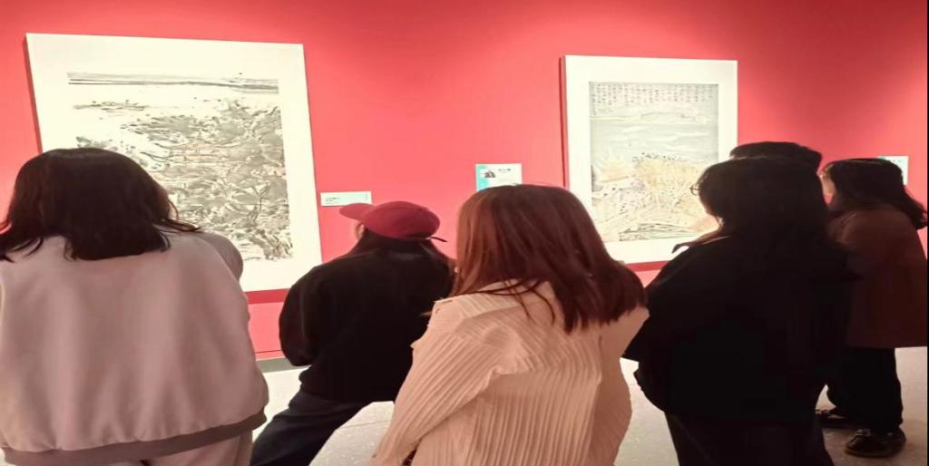 老师和同学们一边欣赏,一边交流体会,感受着中国美术的深厚底蕴和强大魅力。参观结束后,同学们纷纷表示受益匪浅,在欣赏艺术作品的同时感受到了城市建设与生态保护的和谐共融。文学社社长何思云同学说:“画家用画笔将‘绿水青山就是金山银山’的环保理念融入作品中。我是一名石化学子,我想我更应该牢记习近平总书记殷殷嘱托,用自己的所学为‘守护一江碧水’做出自己的贡献。”