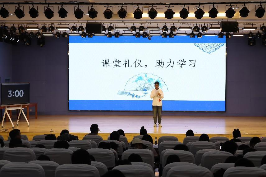 比赛分为初赛和复赛两个阶段。初赛共有260余人参赛,通过团队笔试检验礼仪知识储备。最终,14支队伍表现突出,晋级决赛。决赛分为两轮:第一轮为礼仪知识抢答赛,考验参赛选手对礼仪知识的掌握及快速反应能力,各队在激烈的抢答中展现了团队协作精神,现场气氛紧张热烈;第二轮为现场抽题演讲环节,选手围绕礼仪主题临场发挥,从容阐述对礼仪文化的理解与感悟。他们的演讲内容充实,逻辑清晰,语言表达生动而富有感染力,赢得评委和观众的阵阵掌声。经过两轮激烈比拼,评委根据综合成绩评出名次。