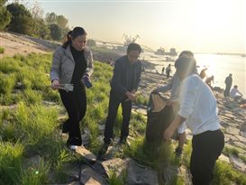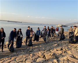 11月16日下午,湖南石化职院石化工程学院分会组织学院全体教师、学生会干部、环保协会学生在城陵矶长江口岸开展了“坚守初心使命,保护一江碧水,向余元君同志学习”为主题的环保活动。本次活动内容为:1.清理河道垃圾,并对收集的垃圾进行分类处理。2.观察长江口岸船舶作业情况,对船舶排污情况进行调研。3.现场采集水样,对采样点水质进项评估。