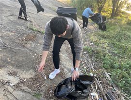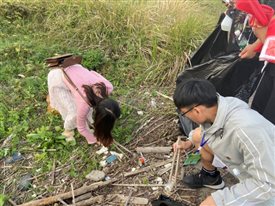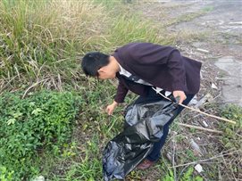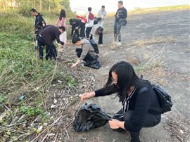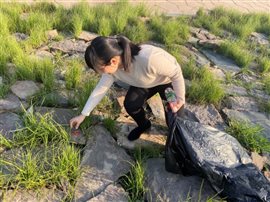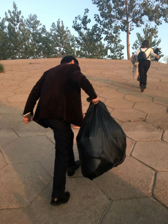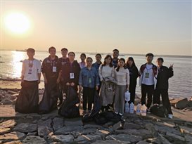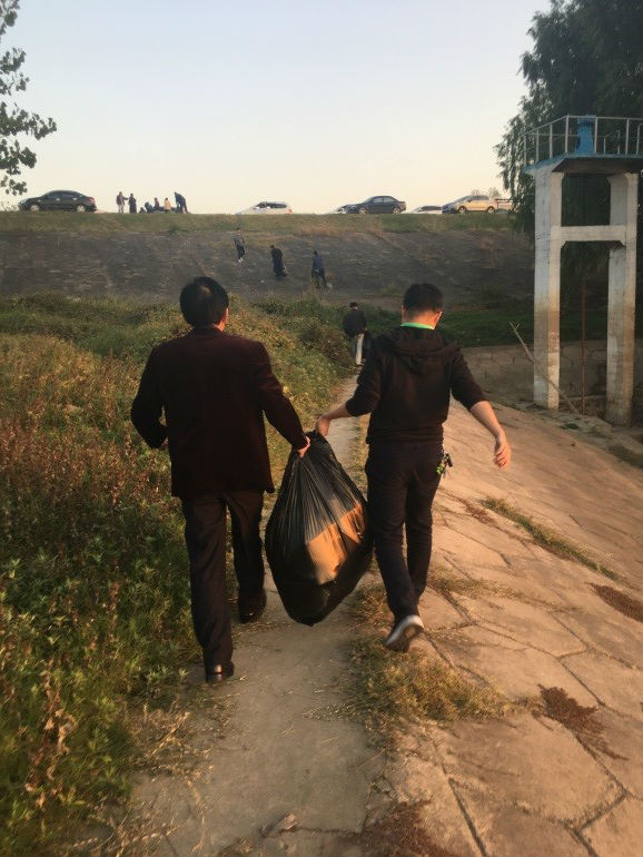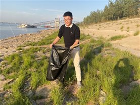 一道残阳铺水中,半江瑟瑟半江红。在美景的陪伴下,全体师生们认真清理河道边上的垃圾,大到废桶酒瓶,小到烟头纸屑,大家不怕脏不怕累,一路拾捡废弃物和垃圾。