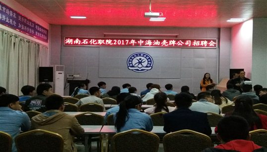 湖南石化职院高度重视学生的就业工作,图为学生参加中海油公司的招聘会 2017/4/11