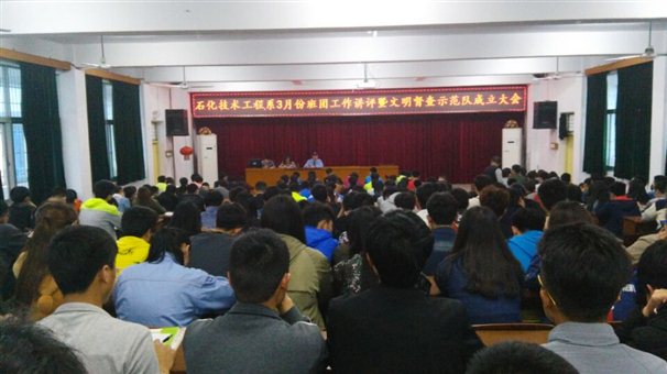 石化技术工程系开展班团工作月度讲评暨文明督察示范队成立大会。刘顺清 2017/4/6