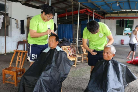 到达岑川,“红锤子服务队”首先到岑川镇养老院进行慰问并迅速搭建义剪的工作区域开展义剪活动。志愿者们虽是第一次参加爱心义剪活动,但手法娴熟,耐心地与每一位前来理发的老人沟通,根据他们的需求,精心打造出满意的发型。一位刚刚理完发的大爷高兴地说:“平时我们在养老院里理发不太方便,这次义剪活动真是太好了,让我们感觉特别贴心,要常来。”