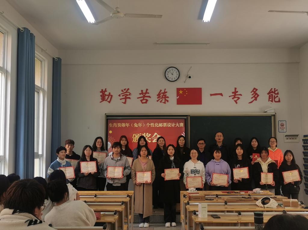 3月31日12点30分,在悦知楼103教室举行了湖南石化职院第十届“校园文化艺术节”暨生肖癸卯年(兔年)个性化邮票设计大赛颁奖大会,来自全校20名获奖选手及入围的30多名选手,共50多名个性化邮票设计者和部分评委老师参加了此次活动。