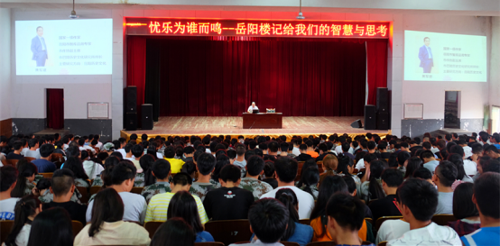 9月21日下午2时,国家一级作家、岳阳市智库咨询专家、岳阳市作协副主席、岳阳市巴陵历史文化研究所所长黄军建先生受我院邀请在学院大礼堂举办“忧乐为谁而鸣——《岳阳楼记》给我们的智慧与思考”主题讲座,全体2017级新生和部分老师参加了讲座。