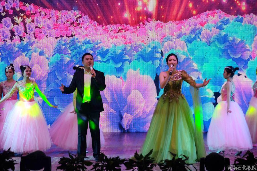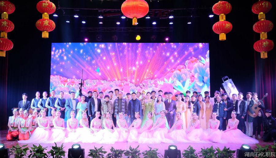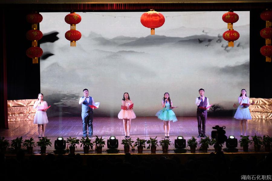 晚会伊始,由文工团带来的《盛世欢腾》开场舞,迅速将现场气氛炒热。来自湘北女子学院的姑娘们带来了《青春的节拍》礼仪秀表演,惊艳全场。广播站带来的配乐诗朗诵《我的南方和北方》,引人入一片画意诗情。《Good Time》是石化装备工程系奉献的一场充满动感与活力的舞蹈表演。舞未跳尽歌登场,无论是乐队表演《夜空中最亮的星》、《曾经的你》还是歌曲联唱《成都》、《春风吹》、《有点甜》、《永远不回头》,歌手们或款款深情或激情洋溢,无不打动着在场观众,真是石化职院好声音。动漫爱好者兴趣小组带来的cosplay表演《反恐行动》,生动有趣;方璐琪同学的古筝演奏《典狱司》大气典雅;孙启明同学带来的独唱《月半小夜曲》,伴以钟磊老师的提琴演奏,掀起又一轮晚会高潮。湘北女子学院带来的第二个节目舞蹈《妞啊扭》,活泼可爱,喜气洋洋。石化管理工程系合唱团带来《我不知道风往哪个方向吹》和《南屏晚钟》,悠扬的歌声让人如痴如醉。最后压轴登场的是由钟磊老师、赵晓晓老师和文工团的同学们一起带来的歌伴舞《相逢春天》为晚会画上了圆满的句号。