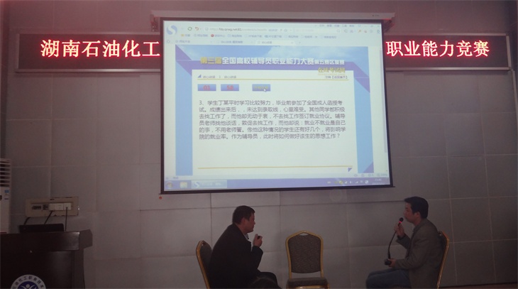 为展示我院辅导员的敬业精神和职业风采,激发辅导员工作热情,夯实辅导员工作基础,持续提升辅导员专业技能,同时选拔优秀辅导员参加全省和全国辅导员职业技能竞赛。2015年3月学生处组织开展了第四届辅导员职业能力竞赛活动。本次竞赛主要包括基础知识测试和博文、公文写作、自我介绍与展示、主题演讲、案例分析、谈心谈话、班情熟知等内容,全体辅导员积极参与、认真准备、全心投入,充分展示了我院辅导员良好的职业素质和积极进取的精神面貌。